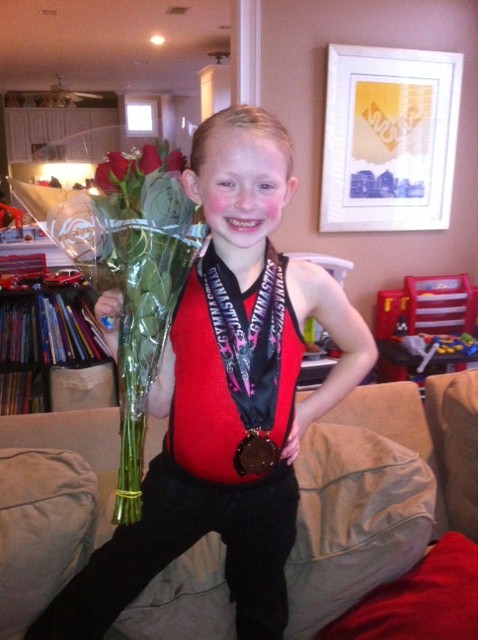 Avery had her first gym meet this weekend and she did awesome. She won a medal in every event and finished third in the all-around competition. I was so proud of her. She loves gymnastics and works several hours a week to get better. Many of you have seen her doing somersaults wherever we go.